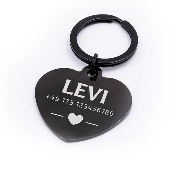 Personalisierte Hundemarke Herzform in Schwarz