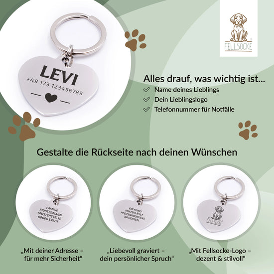 ❤️ Sichere und schmücke deinen Vierbeiner – mit der personalisierten Herz-Hundemarke in Silber von FELLSOCKE!