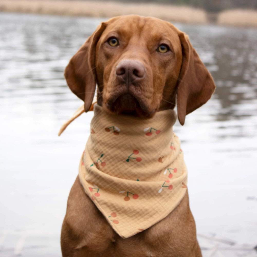 Kirschkaramell Hundehalstuch – Stilvolles Halstuch mit KirschenmusterKirschkaramell Hundehalstuch – Stilvolles Halstuch mit Kirschenmuster