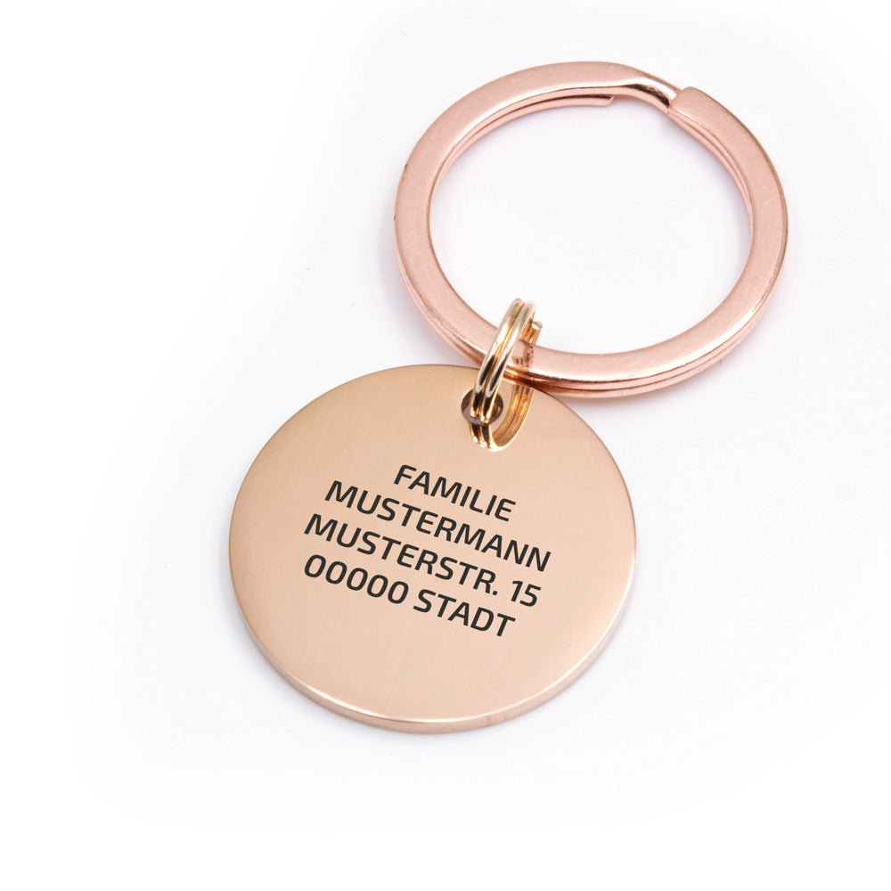 Personalisierte Hundemarke Rund mit Lasergravur 'Roségold' Glanz (Edelstahl)